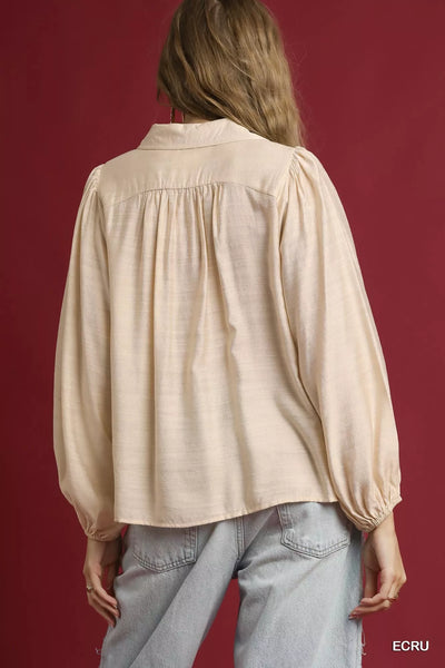 The Long Sleeve Blouse with Leopard Print Trim is a stylish and on-trend piece for your wardrobe. The long sleeves provide coverage and warmth, while the leopard print trim adds a bold and fashionable touch. This blouse is perfect for adding a pop of pattern and personality to your outfit. Whether dressed up for a night out or paired with jeans for a more casual look, this blouse is versatile and eye-catching. Elevate your style with this trendy and chic blouse that is sure to make a statement wherever you go.