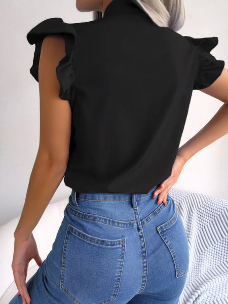 Ruffled Tie Neck Cap Sleeve Blouse