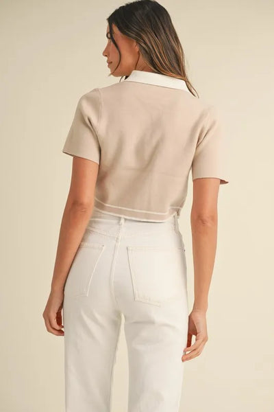 MABLE Button Down Contrast Collared Knit Cardigan