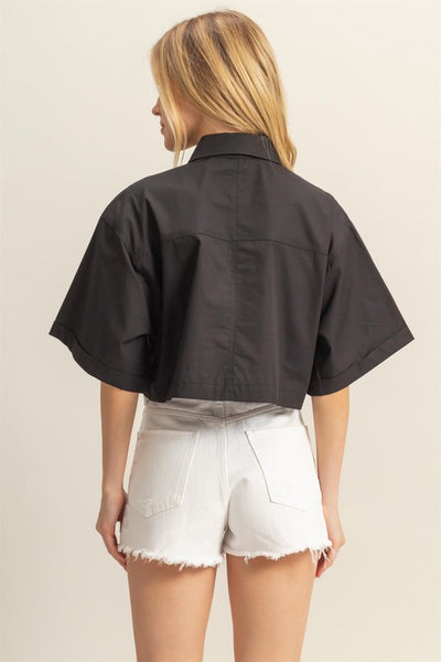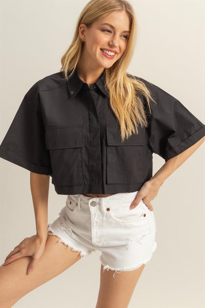 The Front Pockets Poplin Collared Neck Crop Shirt is a stylish and versatile piece that adds a modern twist to your wardrobe. This crop shirt features front pockets that add a utilitarian touch to the design. The collared neck gives it a classic and polished look, while the crop length adds a hint of contemporary flair. Made from poplin fabric, this shirt is breathable and comfortable for all-day wear. Perfect for creating trendy and chic outfits, this piece can be easily dressed up or down for different occasions.