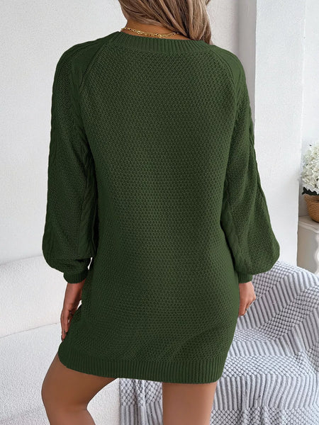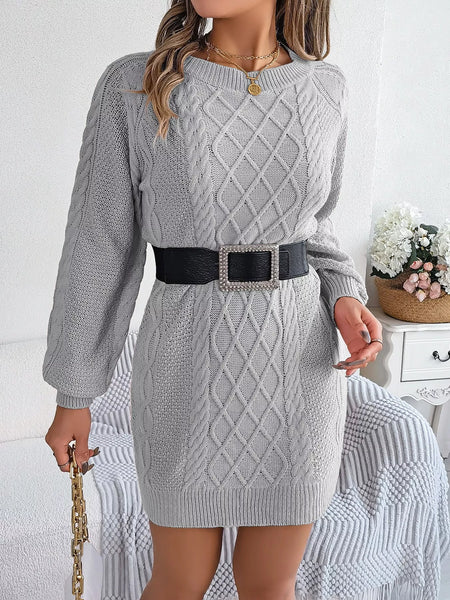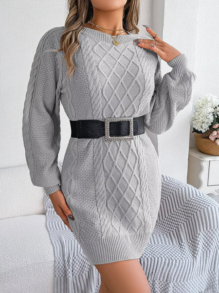 Diamond Cable Knit Sweater Dress with Long Sleeves