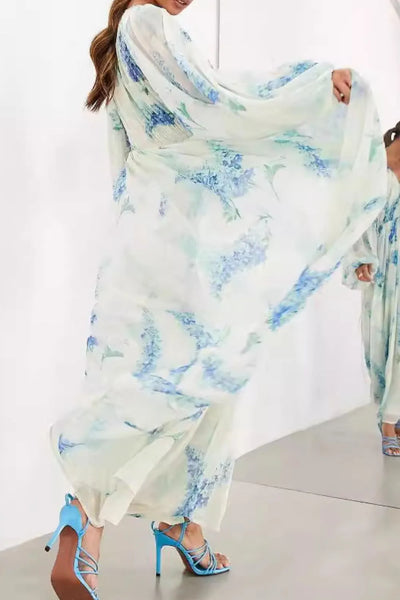 Floral Print Bohemian Maxi Dress with Balloon Sleeves