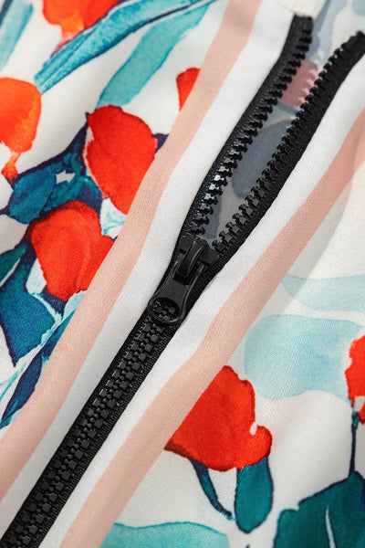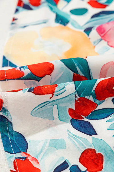 Floral Print Zipper Ruffled Short Sleeve High Waist Mini Dress