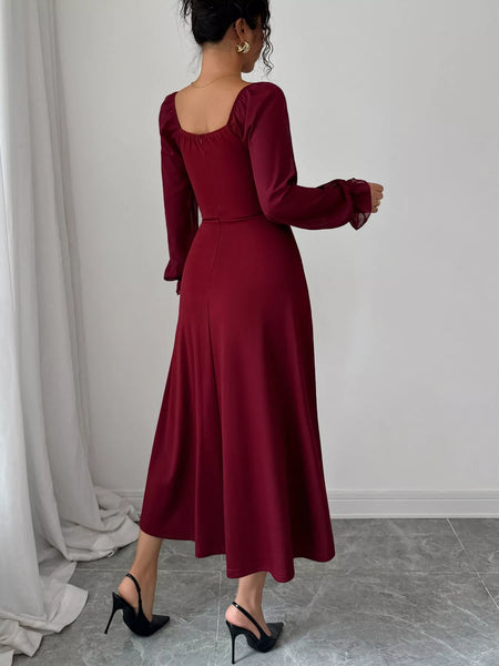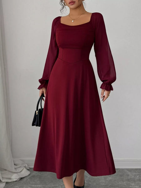 Flounce Sleeve A-Line Midi Dress