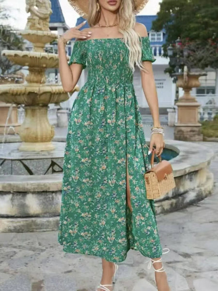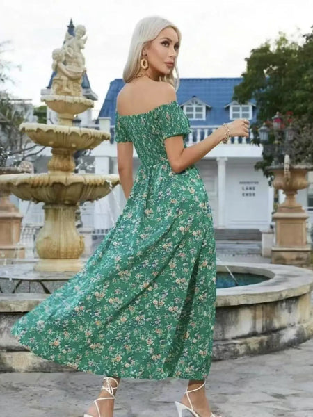 Full Size Slit Off-Shoulder Floral Midi Dress