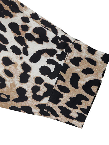 Leopard Print Long Sleeve Mock Neck Mini Dress