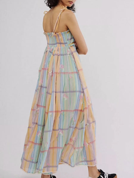 Pastel Plaid Back Smocked Maxi Cami Dress