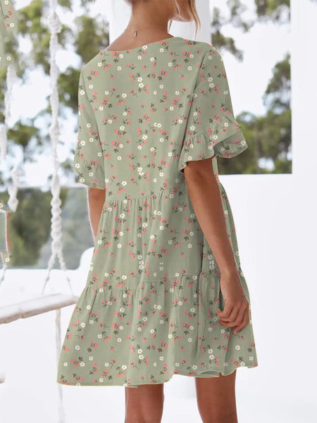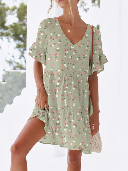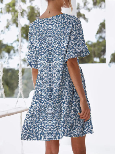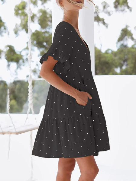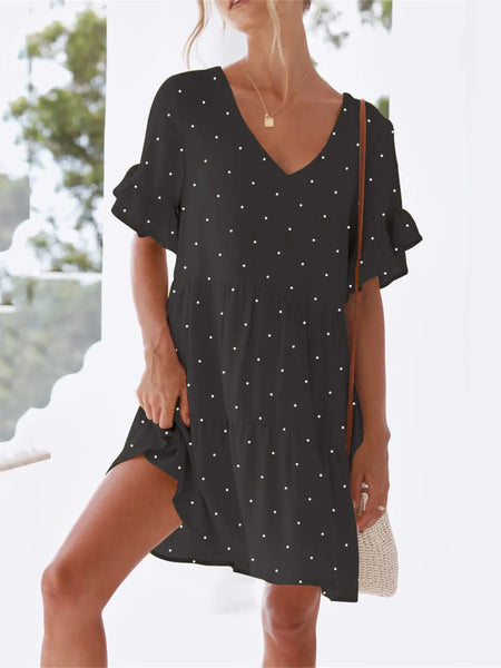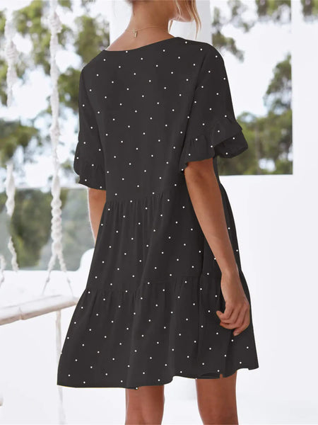 Polka Dot V-Neck Short Sleeve Mini Dress