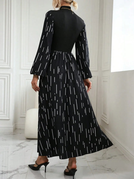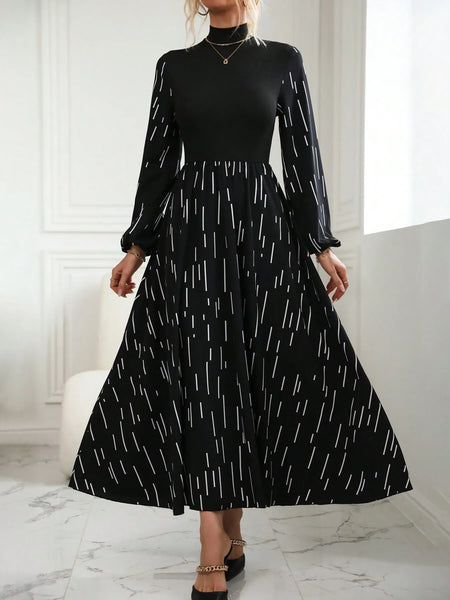 Printed Long Sleeve Mock Neck Dress