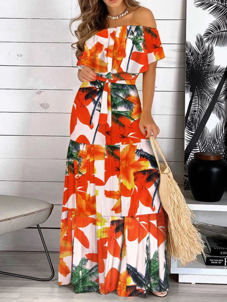 Printed Off Shoulder Maxi Dress