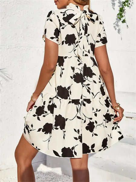 Printed Short Sleeve Mini Dress