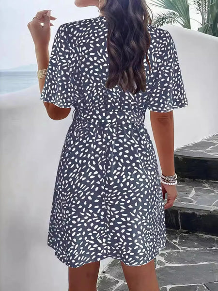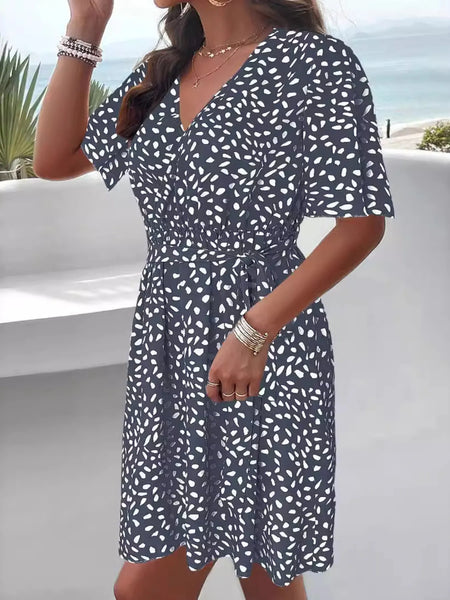 Printed Surplice Tie Waist Dress