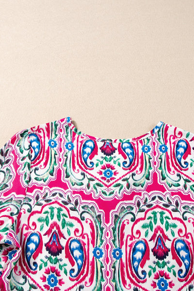 Printed Tie Neck Short Sleeve Dress