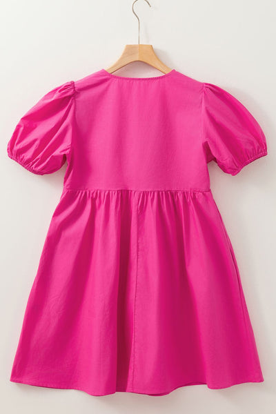 Puff Sleeve Tie Front High Waist Mini Dress
