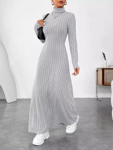 Ribbed Turtleneck Long Sleeve Maxi Knit Dress