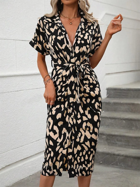 Short Sleeve Tie Waist Dress