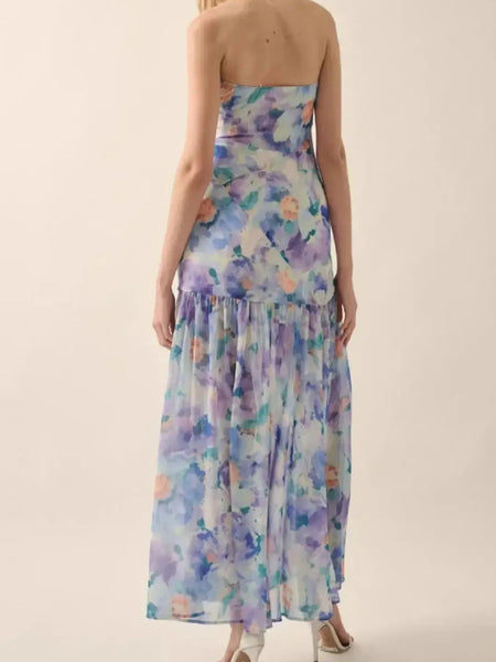 Strapless Floral Maxi Dress with Side Slit
