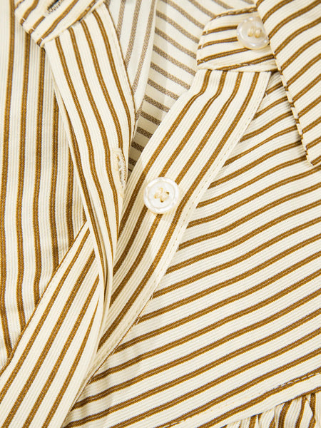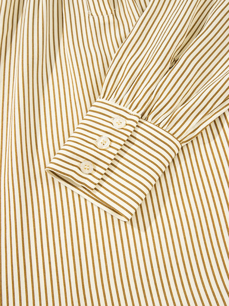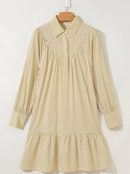 Stripe Collared Neck Cuffed Long Sleeve Drop Waist Mini Dress
