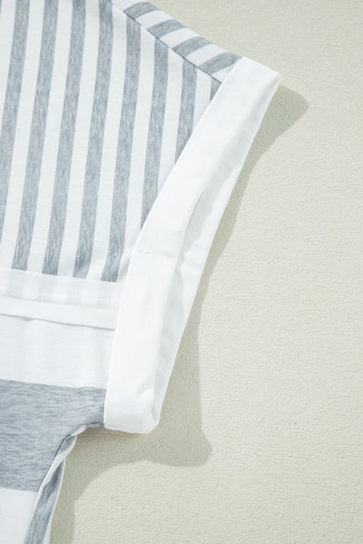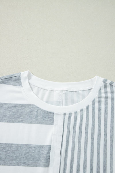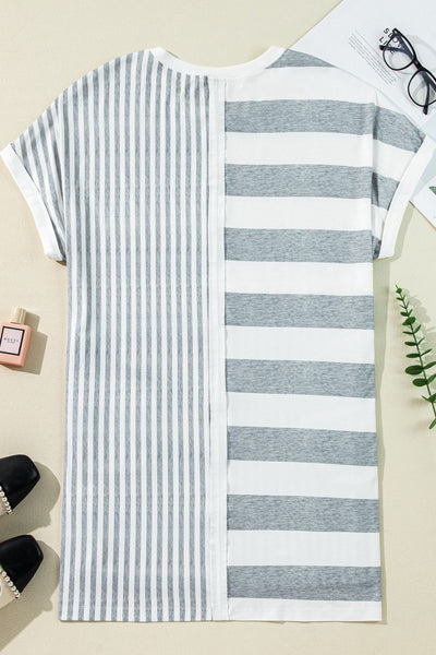 Stripe Mixed Short Sleeve Shift Mini Tee Dress