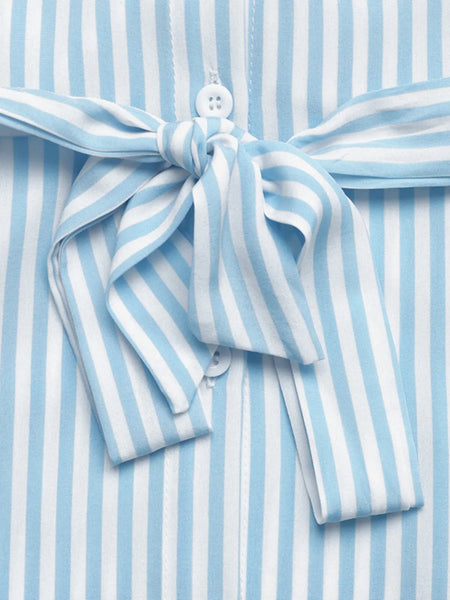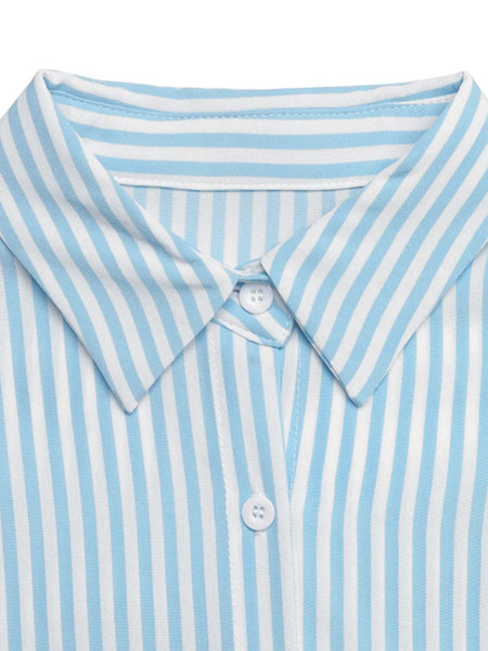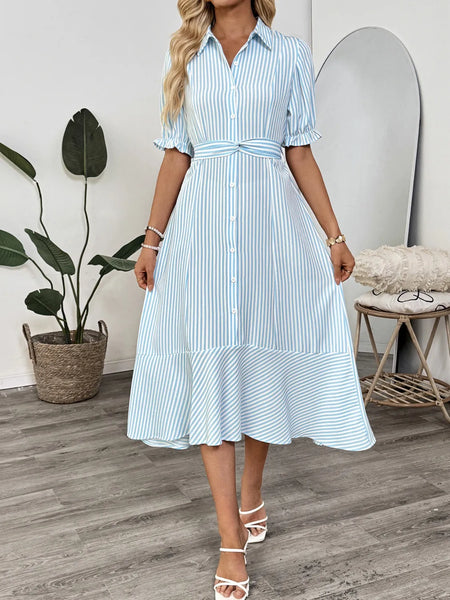 Striped Button-Down Midi Shirt Dress with Ruffle Sleeves