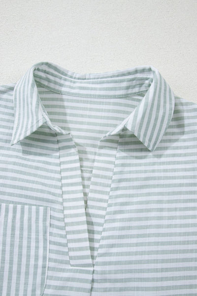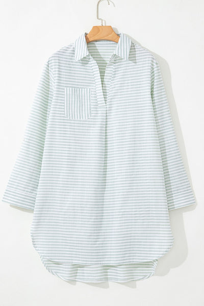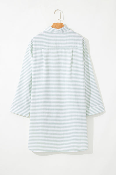 Striped Johnny Collar Long Sleeve Mini Shirt Dress