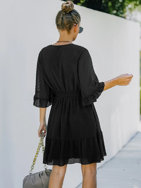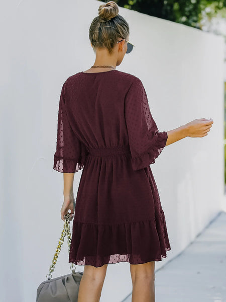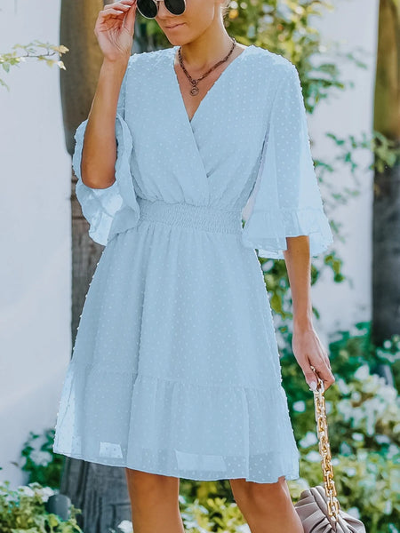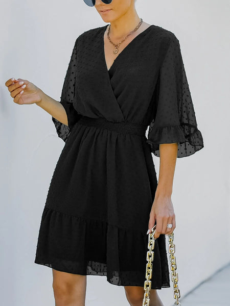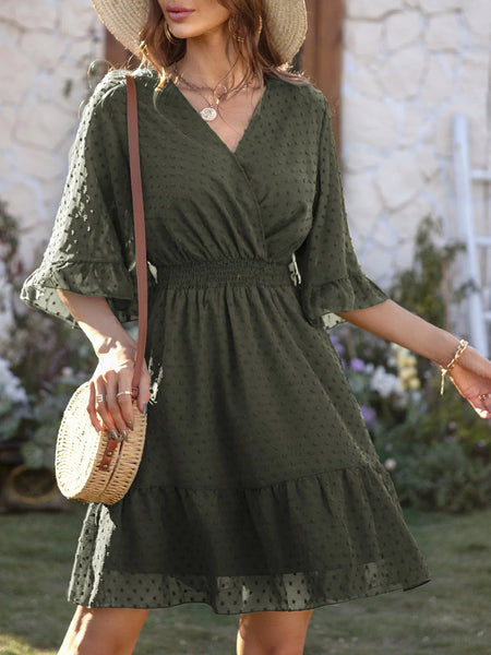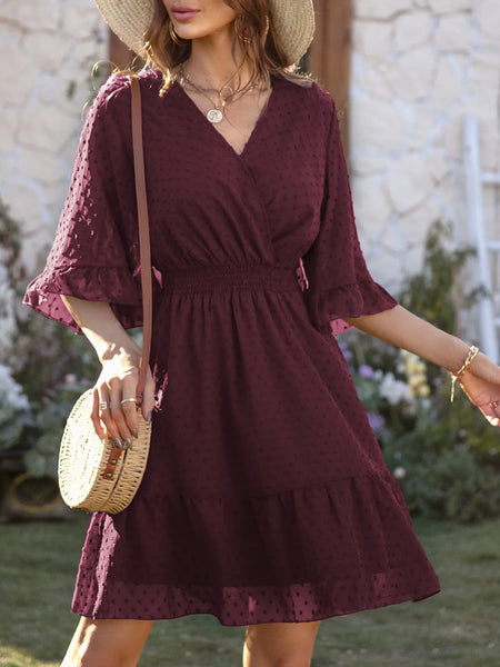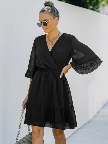 Swiss Dot Flare Sleeve Wrap Mini Dress