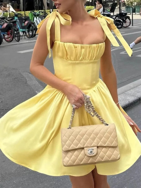 Tie-Shoulder Square Neck Mini Dress