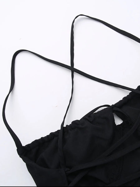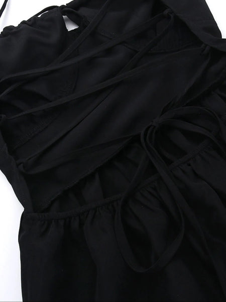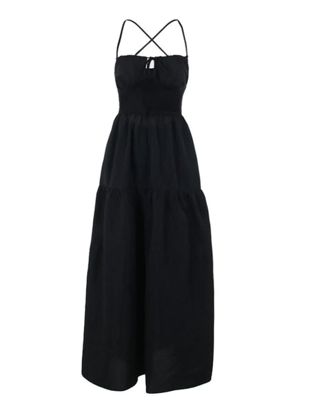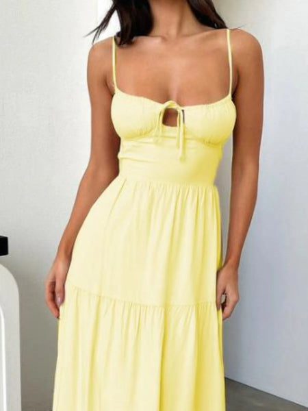 Tiered Lace Up Spaghetti Straps Maxi Dress