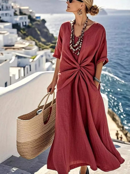 Twist Front V-Neck Half Sleeve Dress