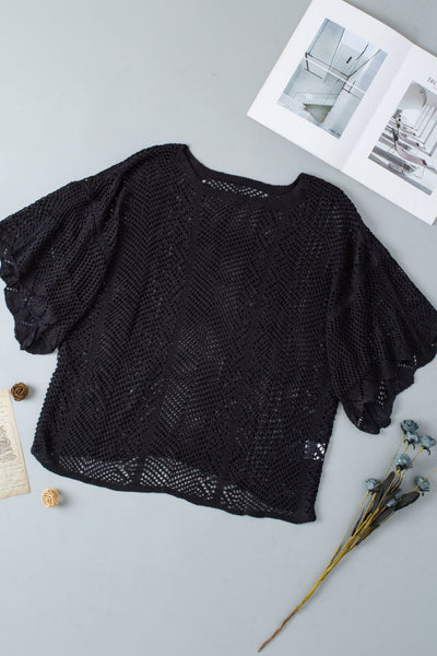 Scallop Edge Half Sleeve Pointelle Knit Top