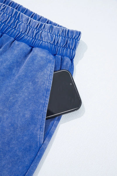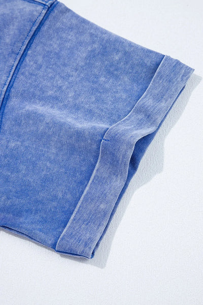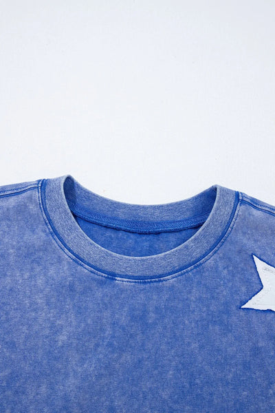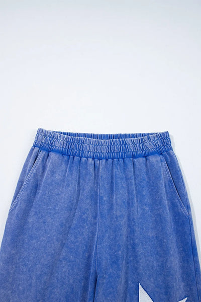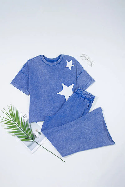 Acid Wash Star Patched Rolled Trim Top and Pants Set
