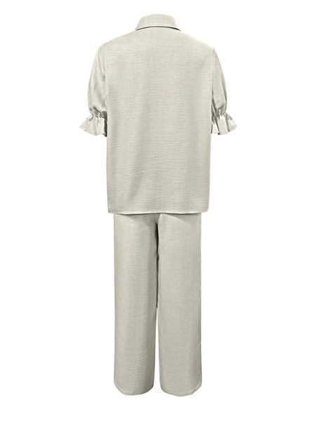 Plus Size Button-Down Shirt and Wide-Leg Pants Set