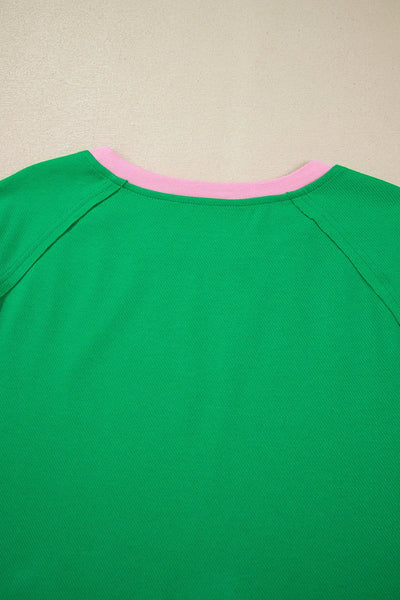 Two Tone Contrast Textured Crewneck Tee and Shorts Set