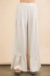 Umgee Full Size Linen Blend Wide Leg Pants with Scalloped Hemline