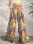 Floral Shirred High Waist Wide Leg Pants with Tie