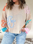 Umgee Flower Jacquard Striped Long Sleeve Sweater