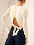 Cutout Back Openwork Round Neck Long Sleeve Sweater