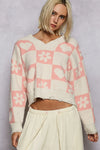 Geometric Dropped Shoulder Long Sleeve Sweater