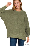 Zenana Brushed Hacci Exposed Seam Hi Low Sweater