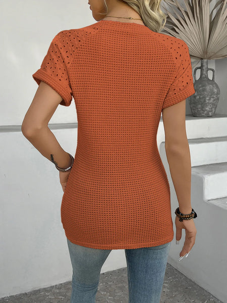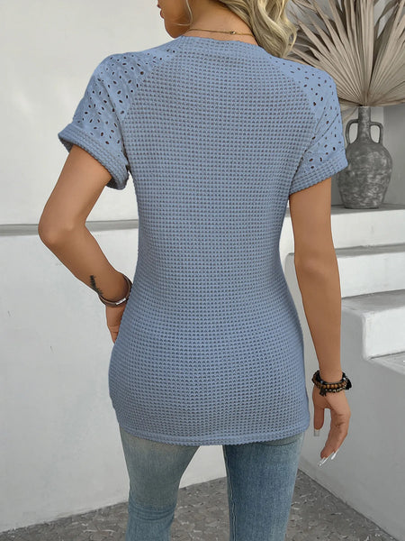 - Features:Basic style,Waffle-Knit,Eyelet
