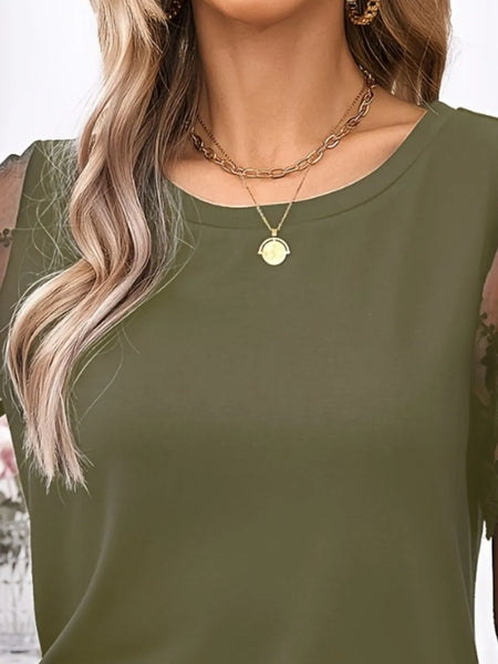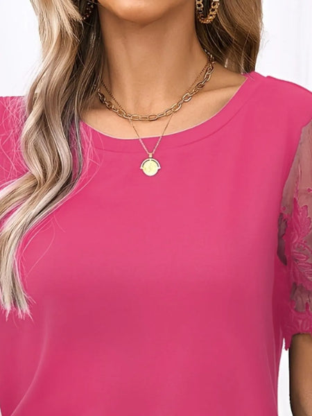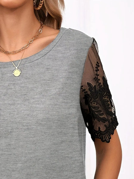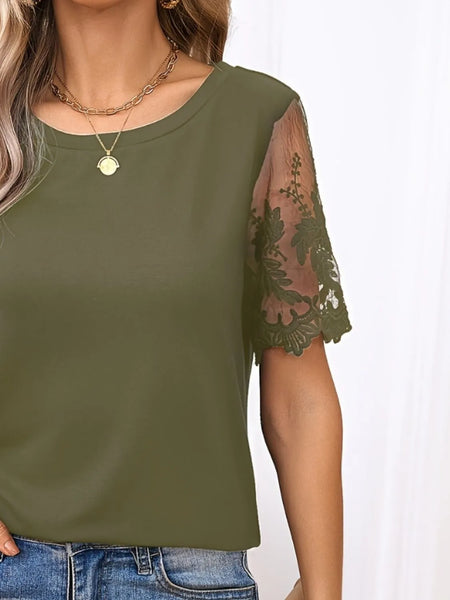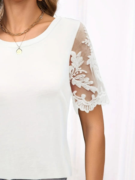 Lace Detail Round Neck Short Sleeve T-Shirt