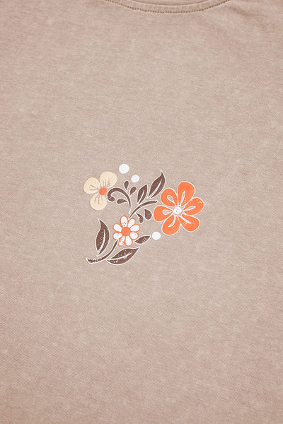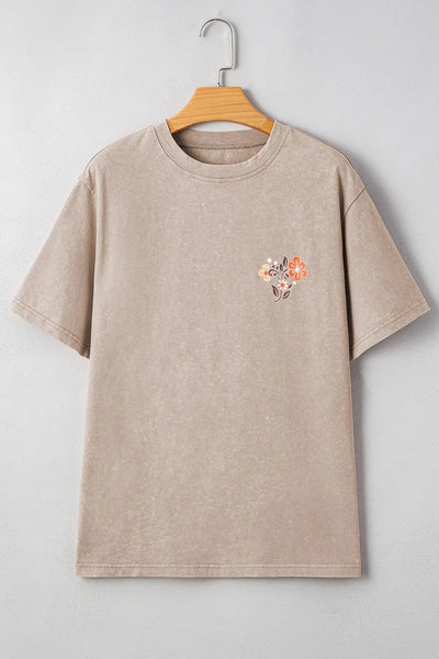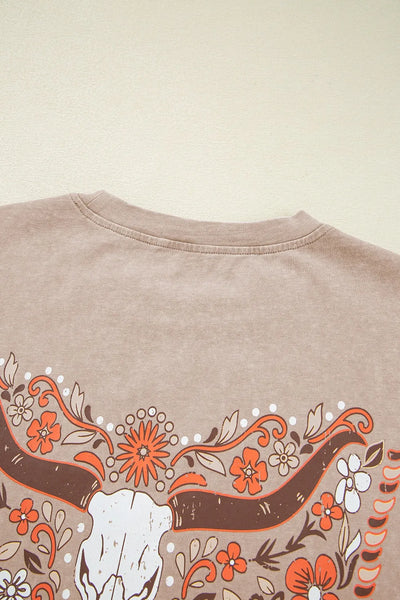 Mineral Wash Floral Steer Head Printed Back Western Fashion Tee
