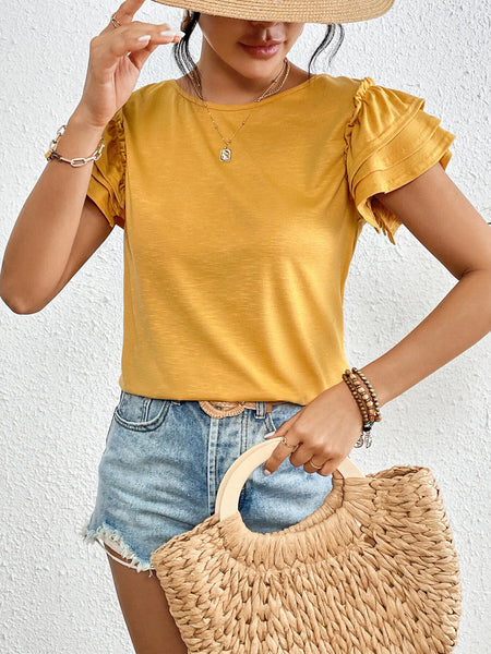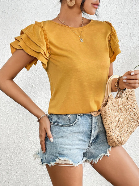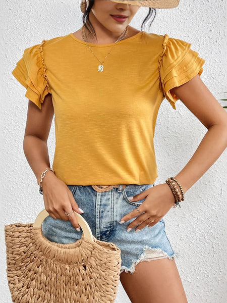 Ruffle Sleeve Round Neck T-Shirt