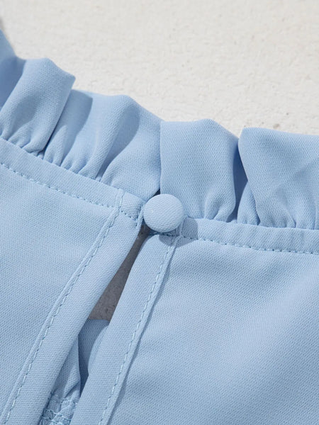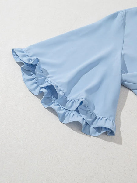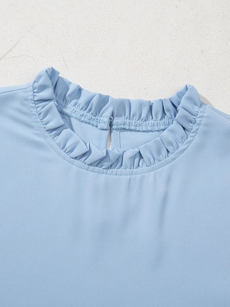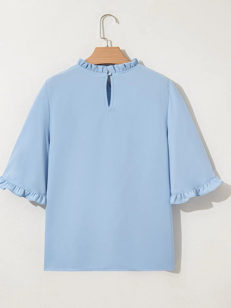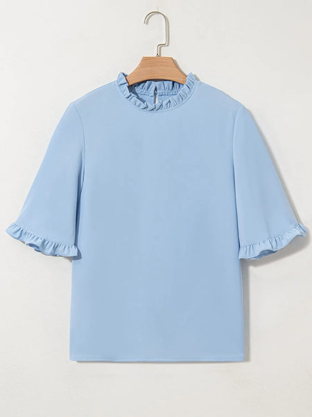 Frill Solid Round Neck Half Sleeve Blouse