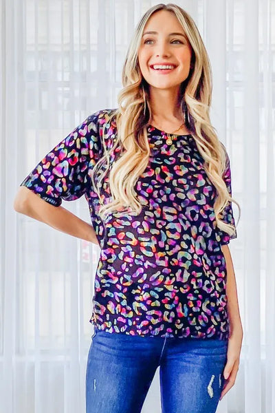 Leopard Foil Printed Half Sleeve Summer Sweater is a bold and stylish choice for warmer weather. This sweater features a trendy leopard foil print for a fashionable look. The half sleeves make it ideal for transitioning seasons, adding a touch of flair to your summer wardrobe.