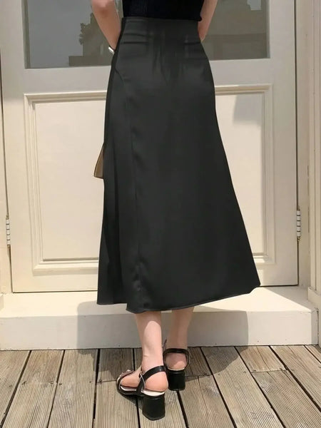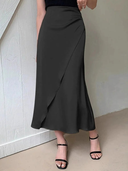 Asymmetric Wrap Midi Skirt with Fluted Hem