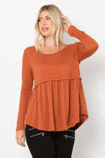 The Texture Babydoll Round Neck Long Sleeve Top is a must-have wardrobe staple for any fashionista. The soft and textured fabric gives a cozy and chic look, while the babydoll silhouette adds a touch of femininity. The round neck and long sleeves make it perfect for layering or wearing on its own. Pair it with jeans or a skirt for a versatile and stylish outfit that can take you from day to night effortlessly.
