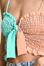 BiBi Woven Color Block Smocked with Ribbon Bra Top