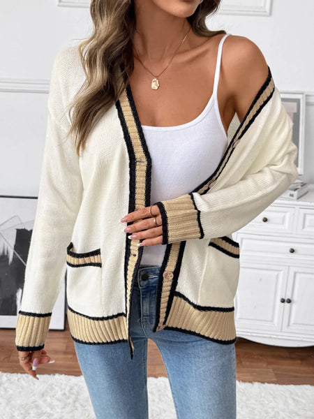 Contrast Trim Button Up Knit Cardigan