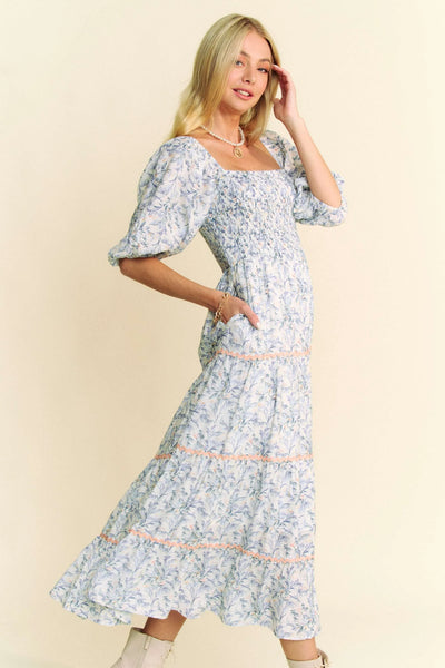 This Contrast Ric Smocking Bodice Tiered Midi Dress features a unique design with a contrasting ric smocking bodice that adds texture and visual interest. The tiered skirt adds volume and movement to the dress, creating a feminine and flattering silhouette. Perfect for a stylish and vibrant look that transitions easily from day to night.